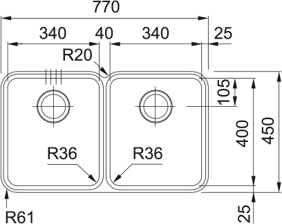 • Bowl 2 length (left-right): 340 mm