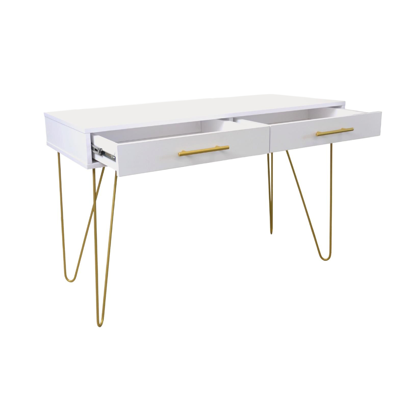Откройте для себя консоль Mia белого цвета с золотыми ножками - элегантное дополнение к мебели для спальни и гостиной.