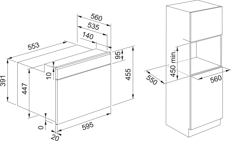 • Adâncime totală: 560 mm