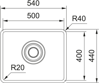 • Внешняя ширина (спереди-назад): 440 мм